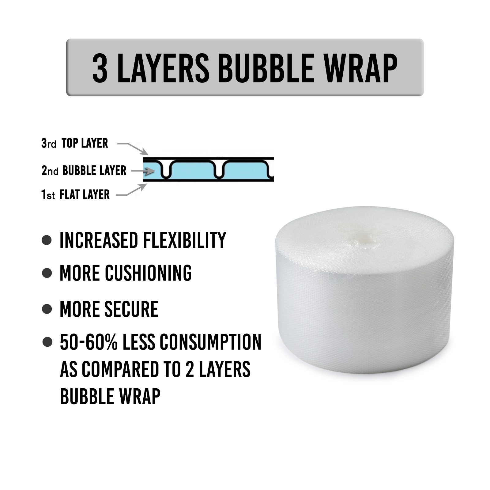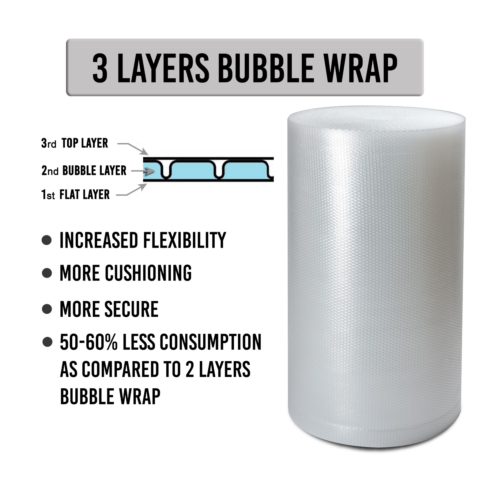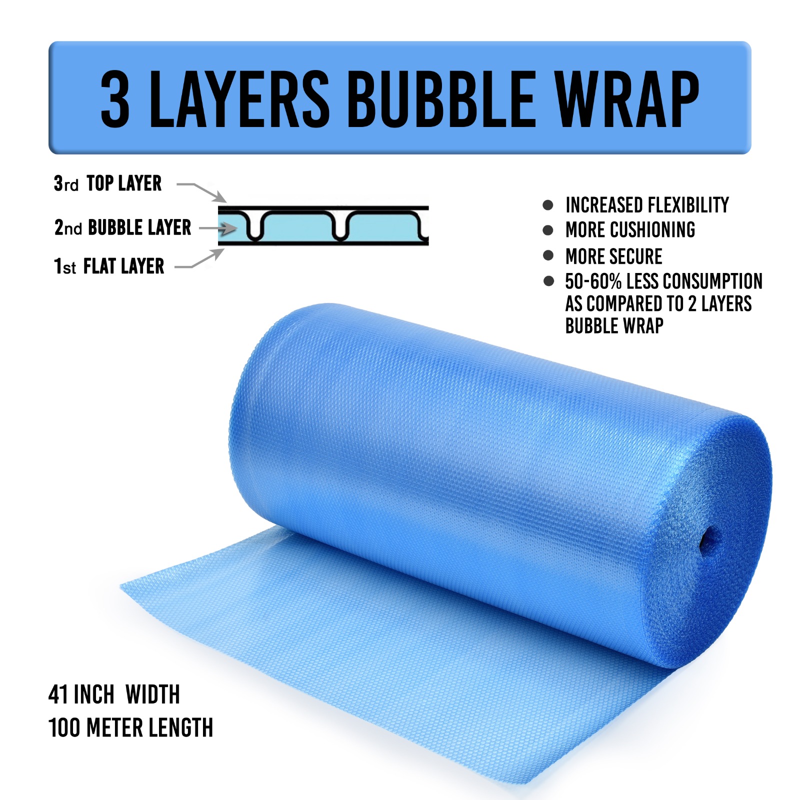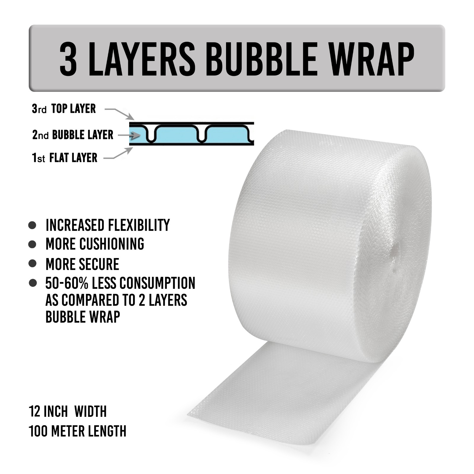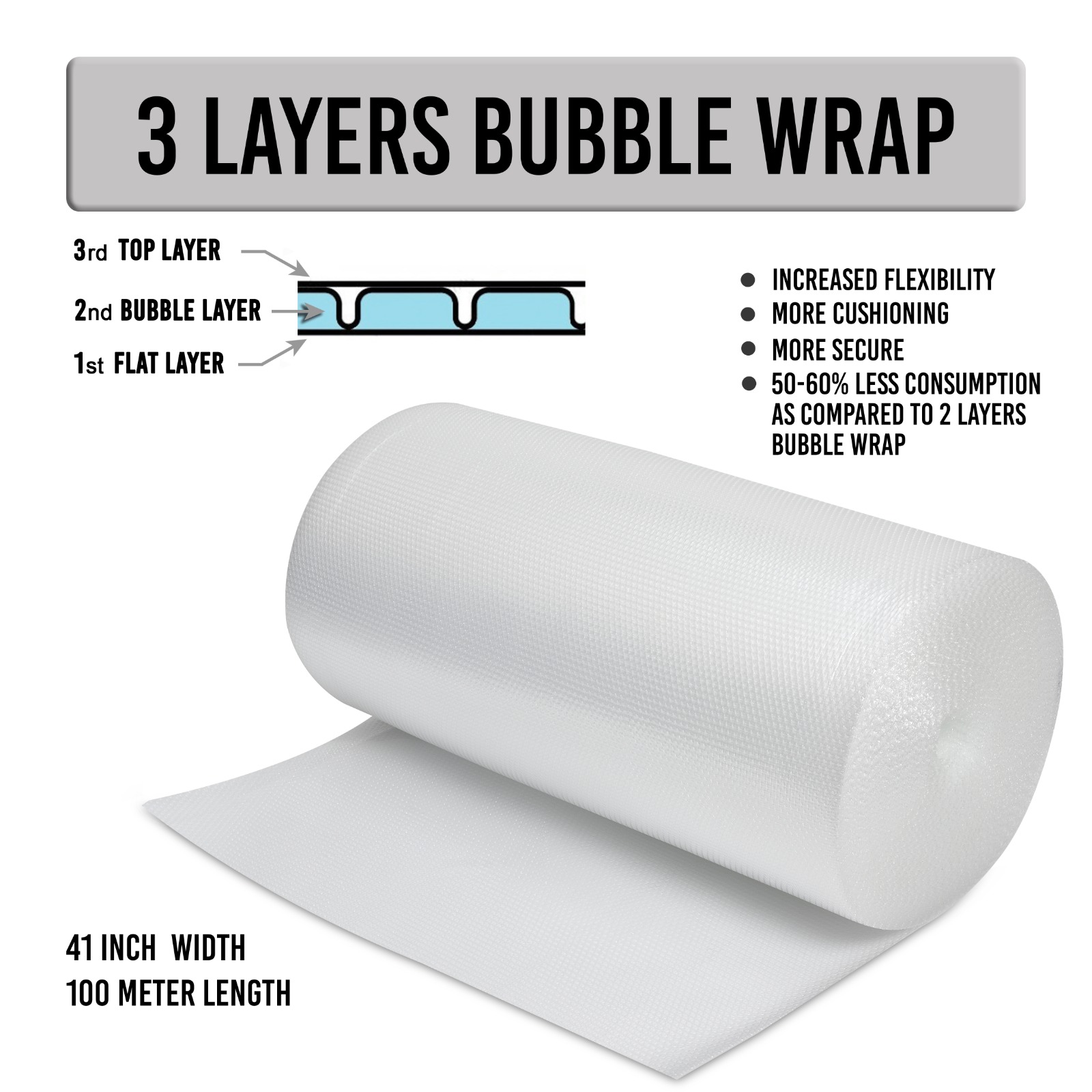 Bubble film in pakistan from Areebah Consumables offers reliable protection for your delicate and fragile items during shipping and storage. Featuring a durable polyethylene construction with air-filled bubbles, our Bubble film in pakistan provides a cushioned layer that absorbs shocks and impacts, preventing damage and breakage. Ideal for wrapping, interleaving, or cushioning items of all shapes and sizes, our Bubble film in pakistan is versatile and easy to use. Whether you're packing electronics, glassware, ceramics, or other sensitive products, our Bubble film in pakistan ensures they reach their destination safely and securely. Trust Areebah Consumables for high-quality Bubble film in pakistan that delivers peace of mind with every package.